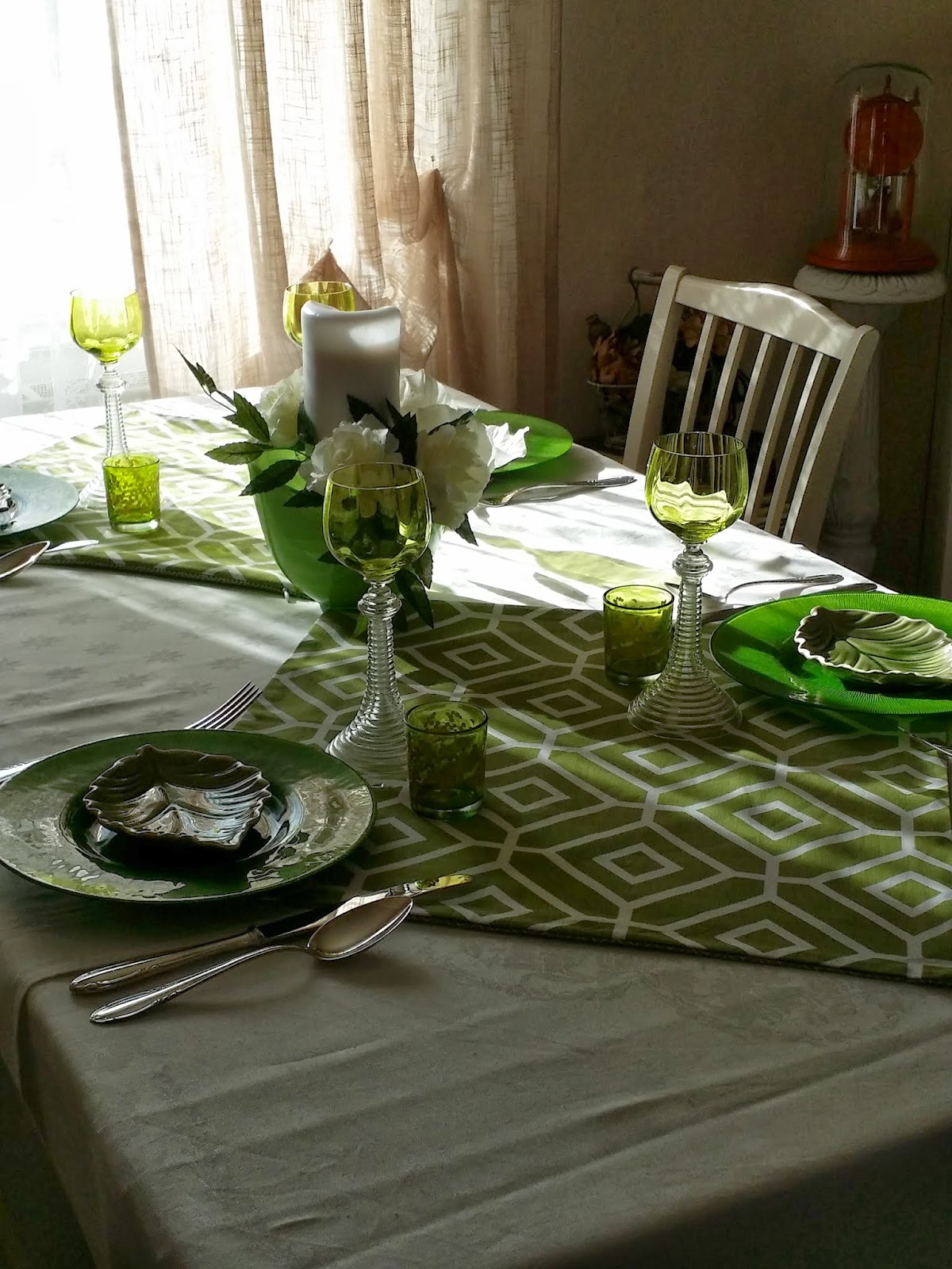 SvaraRaderaYour table setting is splendid. Lovely variety of green tones. and so love the green shadow from the glass.